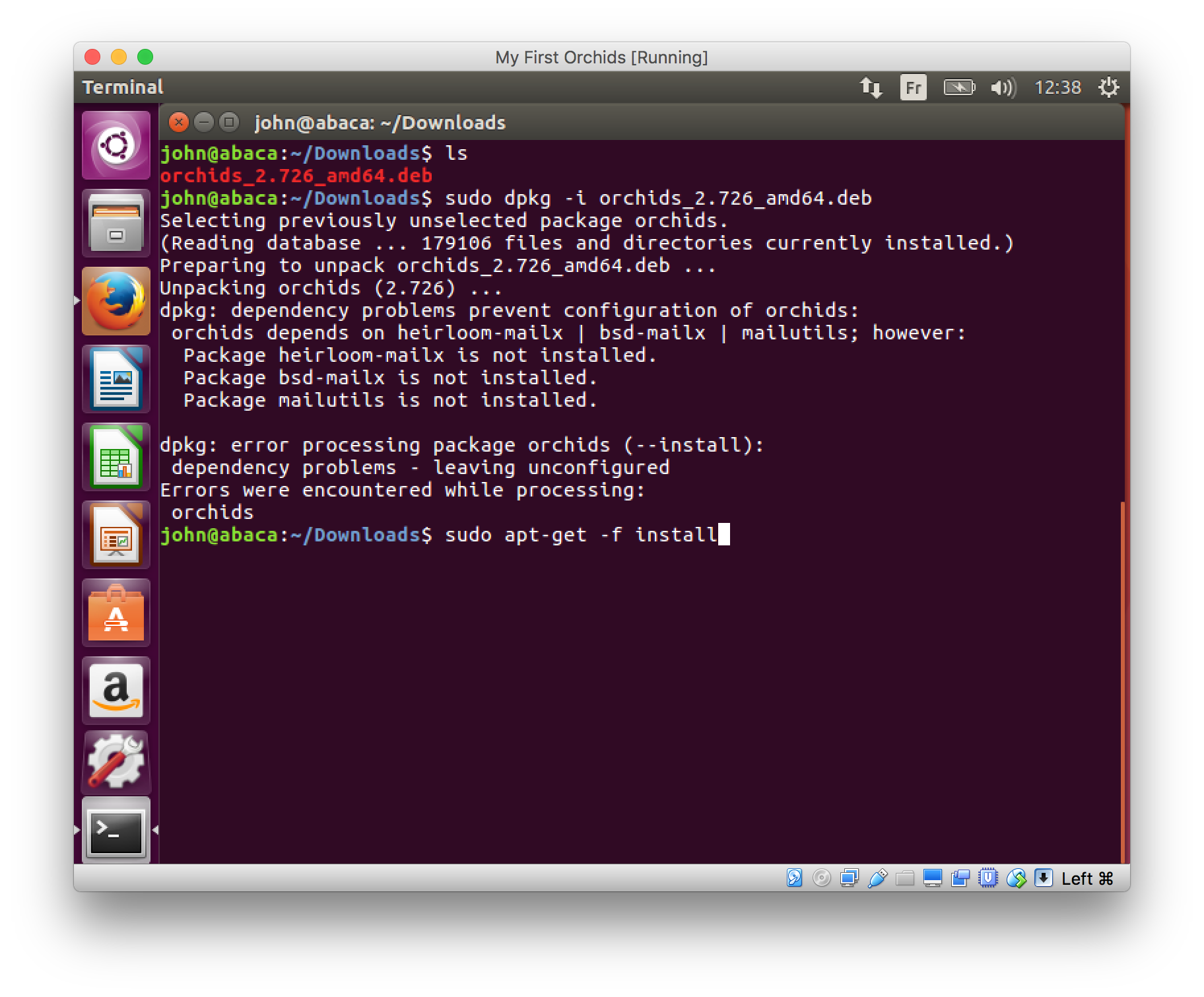 Note that dpkg will say that installation failed because of unresolved dependencies: this is what apt-get -f install cures.