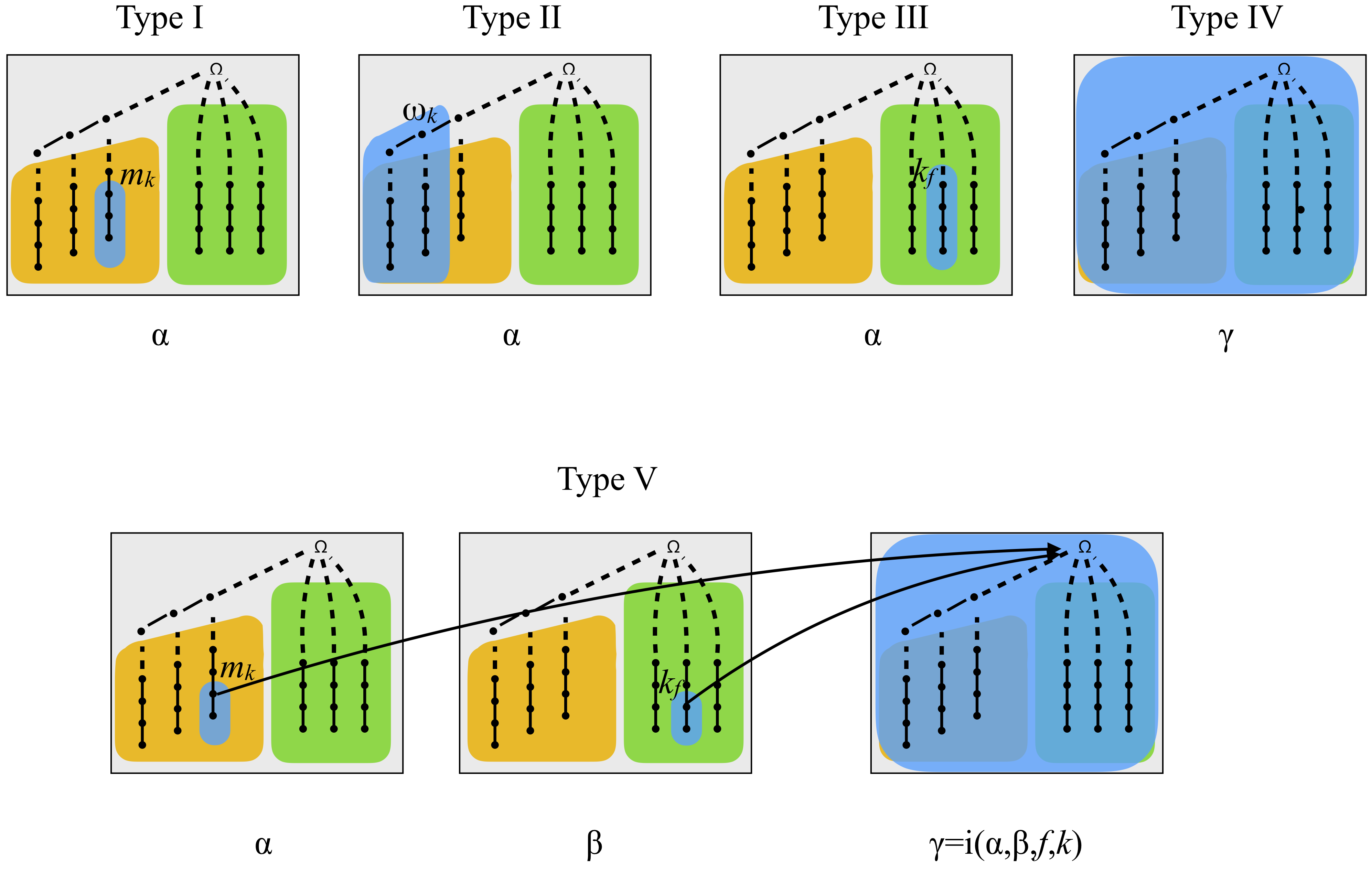 | Type I | I/∅ | I/∅ | ∅ | I/∅ | I/∅ |