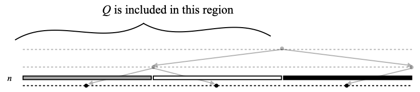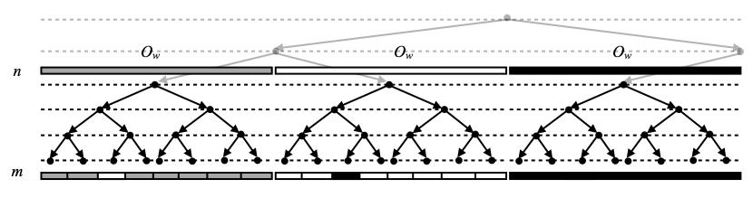 Proof. This should be clear from the picture below, where we have shown the three possible cases we have for w; recall that ψ(m,f) is the union of the gray and black regions on the bottom row (level m). Recall that all the clopen chunks involved are non-empty, by construction. ☐
