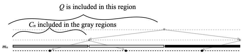 Additionally, invariant (An) tells us that Cn is equal to Q ∩ ψ(mn,fn), hence that Cn is entirely contained in the gray (possibly taken, mapped by fn to 1) area inside Q.